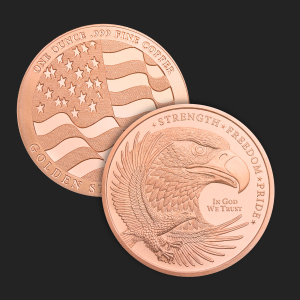 • Fantástica moneda de cobre puro «ÁGUILA CALVA Y BANDERA USA». Ø: 39m. 29 gramos (onza).