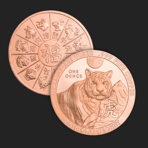 • Fantástica moneda de cobre puro «AÑO DEL TIGRE (2022) – CALENDARIO CHINO». Ø: 39m. 29 gramos (onza)