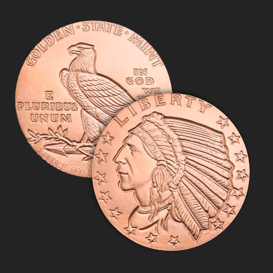 Categoría: Cobre Etiquetas: cabeza de indio, cobre, Golden State Mint, Indio, moneda, oz, redonda