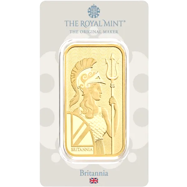 La serie de lingotes de oro Royal Mint Britannia está bellamente diseñada y es una opción muy popular para las personas que buscan comprar lingotes de oro con fines de inversión. La serie de lingotes Britannia se lanzó tras el éxito de la serie de monedas Britannia. Lanzada originalmente en 1986, la moneda británica Britannia es la gama de productos más vendida de Royal Mint. La serie también está disponible en oro, plata y platino, y contiene una imagen de Lady Britannia en el frente.