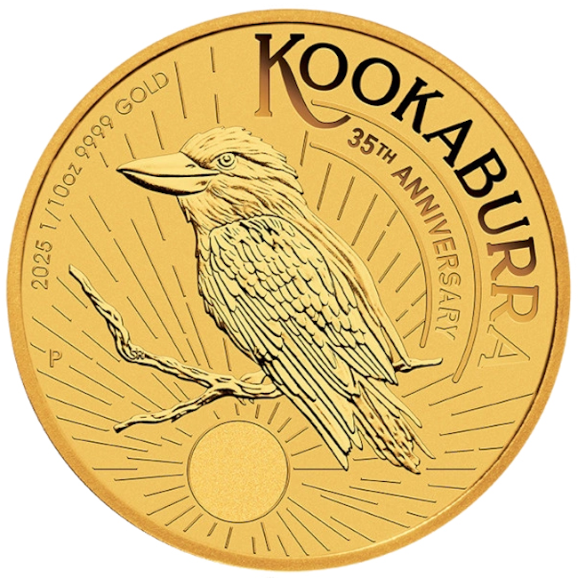 La moneda de Oro Australiana Kookaburra de 1/10 de onza es una moneda de lingote comercializada a nivel mundial que ha sido la primeria serie producida por Perth Mint (Casa de la Moneda australiana) desde 1990. Debido a la limitación a 15.000 piezas, la pureza y su reputación internacional, es un producto codiciado no solo por inversores sino también por coleccionistas.