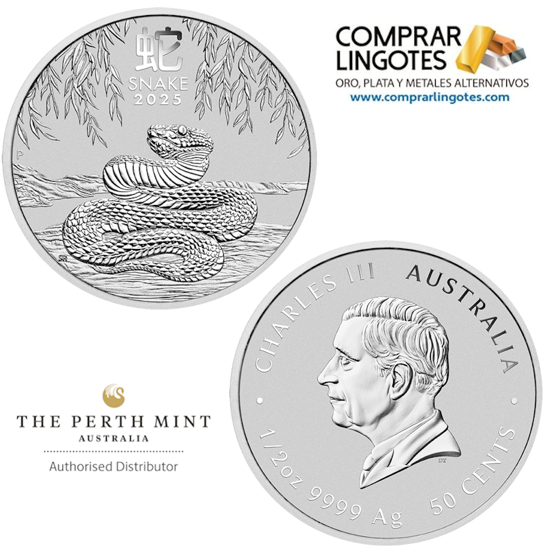 Moneda de plata, Año de la serpiente 2025 (Perth Mint, Australia) . Este es el sexto lanzamiento de la Serie Lunar III de The Perth Mint. La serie está basada en los 12 signos del zodiaco del calendario lunar chino. La serie Lunar III en Feingold comenzó en 2020. Cada moneda está acuñada con un 99,99% de plata fina,con un valor facial de 50 céntimos Australianos The Perth Mint Australia.