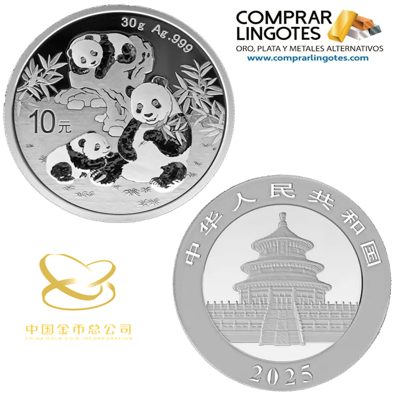 Moneda de plata, Panda 2025 de 30 gramos, ha sido delicadamente acuñada por China Gold Coin Incorporation con una pureza de 999/1000. Su diámetro es de 40 mm, como moneda oficial de la República Popular China, esta moneda de plata de 30 gramos tiene un valor nominal de 10 yuanes. Se trata de una de las casas de acuñado más prestigiosas del país.
